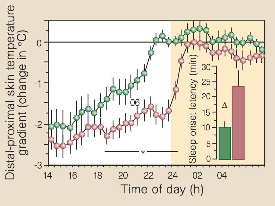 [2] [Temperature Trigger] Krauchi, K., Cajochen, C., Werth, E., & Wirz-Justice, A. (1999). Warm feet promote the rapid onset of sleep. Nature, 401(6748), 36-37.